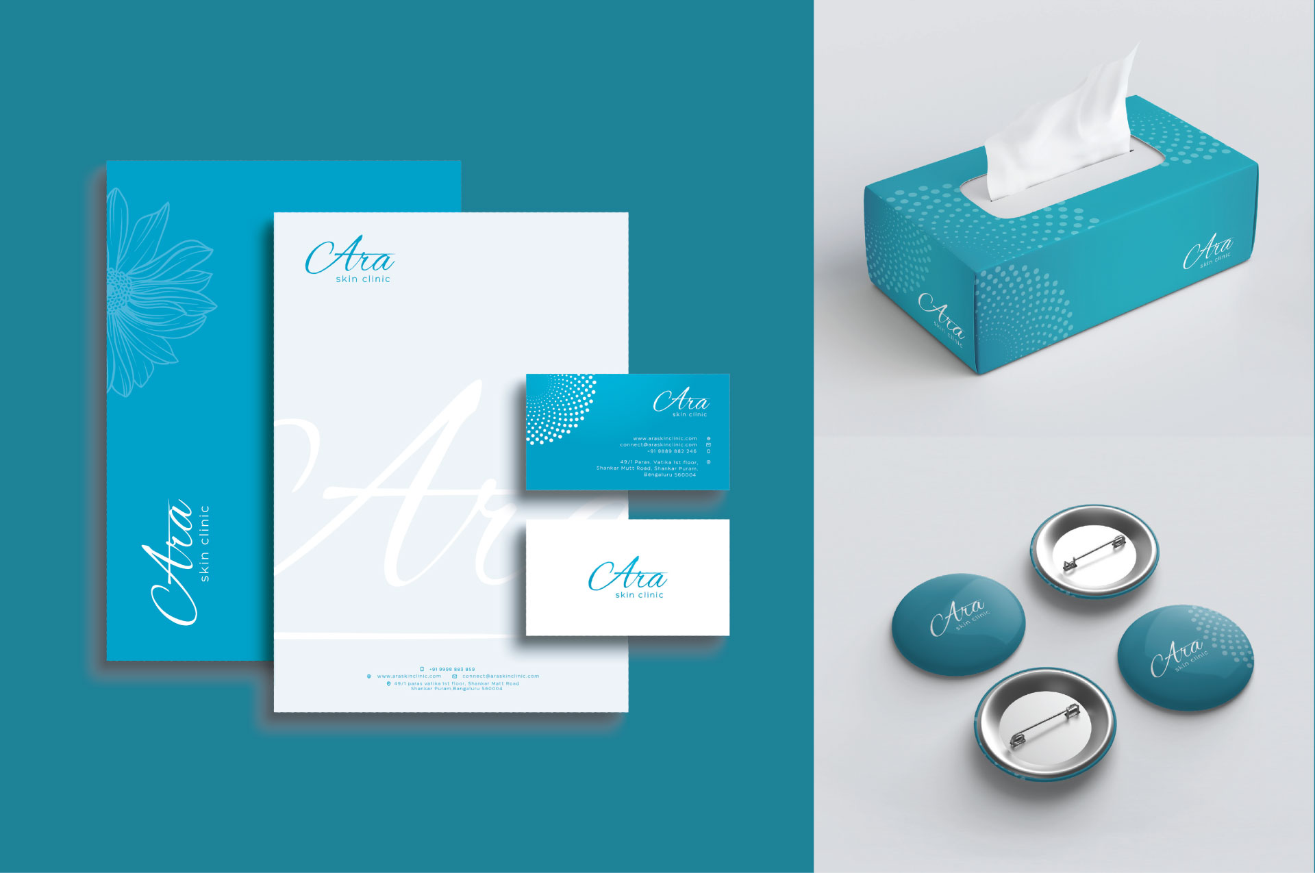 Introducing Ara Skin Clinic, where empathy meets beauty! Our journey in branding this skin clinic began with a thorough understanding of our target audience’s desires and aspirations. We crafted a brand identity that resonated with their pursuit for flawless skin and a renewed sense of confidence. The name, “Ara,” evokes a sense of luminosity and vitality. It took us a month to finalize the name.